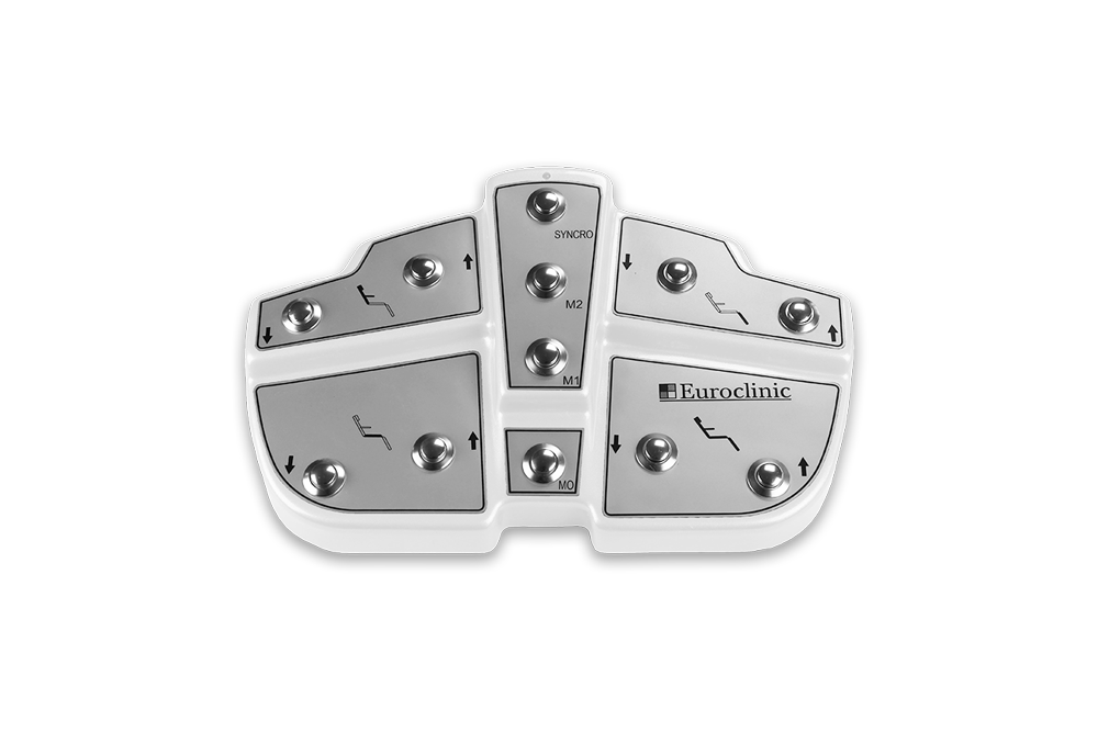 Педаль управления Оснащена запоминающим устройством с памятью на 4 позиции: 3 положения, выбранные оператором, и 1 для вызова положения покоя кресла («нулевое» положение). Опционально - использование беспроводной педали.