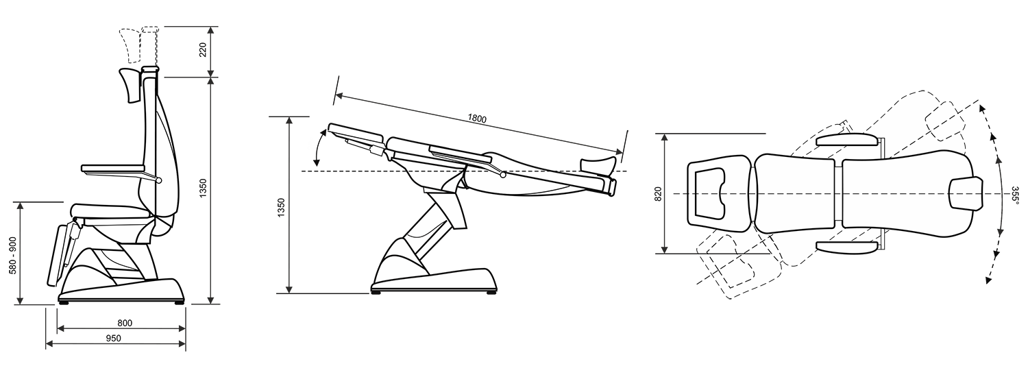 Профессиональное ЛОР-кресло оснащено 4 линейными двигателями, обеспечивающими независимое движение всего кресла, спинки, сиденья и опоры для ног.