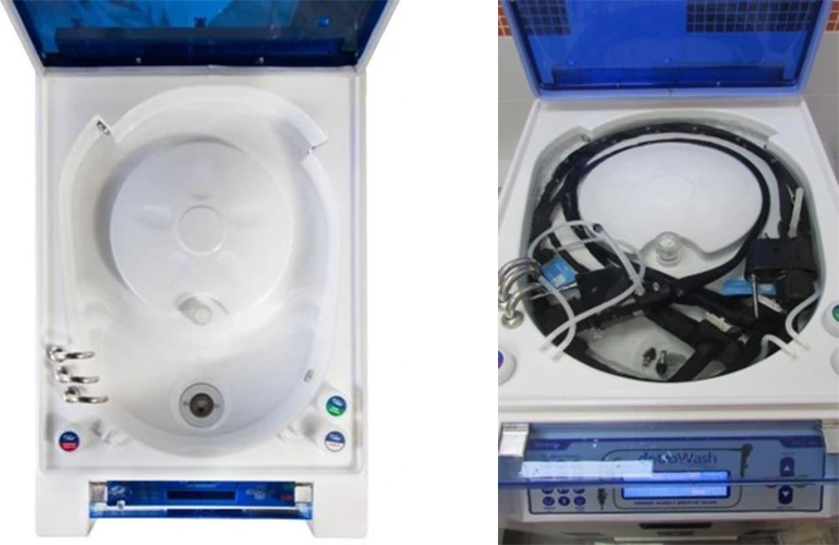 Моечная машина для гибких эндоскопов Detro Wash 8003 с набором необходимого функционала для качественной дезинфекции. Имеется подогрев дезинфектантов, принтер для документирования процесса и ультрафиолетовая лампа для очистки воды.