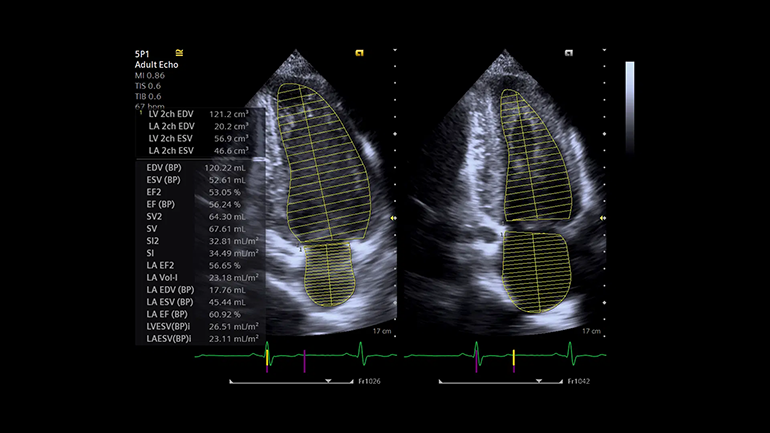 Технология выполнения измерений левых отделов сердца (eSie Left Heart). Пакет измерений левых отделов сердца eSie Left Heart — это надежный инструмент, который повышает надежность и оптимизирует рабочий процесс благодаря автоматическому определению границ левого желудочка и левого предсердия и выполнению измерений при стандартных трансторакальных исследованиях у взрослых пациентов.