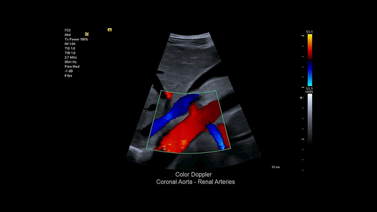 Цветовые допплеровские режимы.  Надежность диагностики повышается благодаря высокочувствительному цветовому доплеровскому режиму при снижении артефактов яркости цвета.