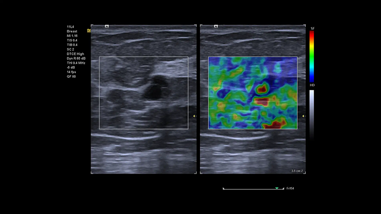 Технология качественной визуализации относительной эластичности ткани eSie Touch. Метод качественной и количественной эластографии в режиме реального времени, который позволяет вычислять и отображать на экране относительную жесткость исследуемой ткани. Метод eSie Touch дает возможность сгенерировать эластограмму за счет применения к ткани последовательных циклов мануальной компрессии во время стандартной визуализации в B-режиме.