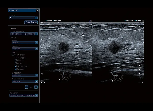 Aplio поддерживает множество стандартизированных протоколов для описания, отчетности и лечения поражений, включая BI-RADS™, LI-RADS™ и TI-RADS™.