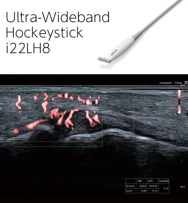 Передовые технологии, такие как эластография или SMI, также доступны на специальных датчиках для расширенных исследований, таких как количественная оценка воспаления в мелких суставах.