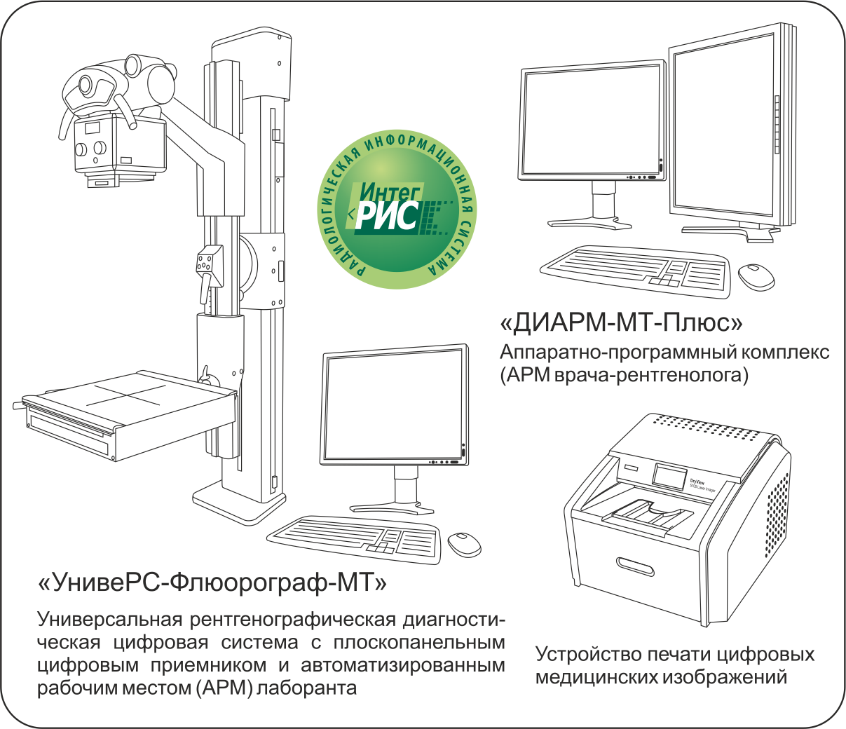 • аппаратно-программный комплекс «ДИАРМ-МТ-Плюс» (АРМ врача-рентгенолога);