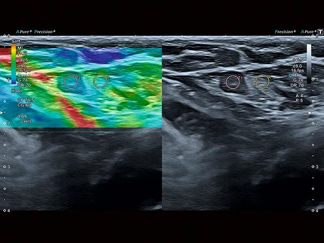 Технология сдвиговых волн Aplio обеспечивает количественное измерение эластичности тканей и отображение ее в режиме реального времени в различных клинических условиях. Интеллектуальные карты помогают визуально оценить распространение и качество эластограммы.