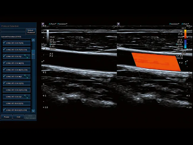 Aplio обеспечивает цветную допплерографию с превосходным пространственным разрешением, позволяющую выявлять мельчайшие узоры кровотока с беспрецедентной точностью и детализацией при высокой частоте кадров, сохраняя при этом полное качество изображения в режиме B