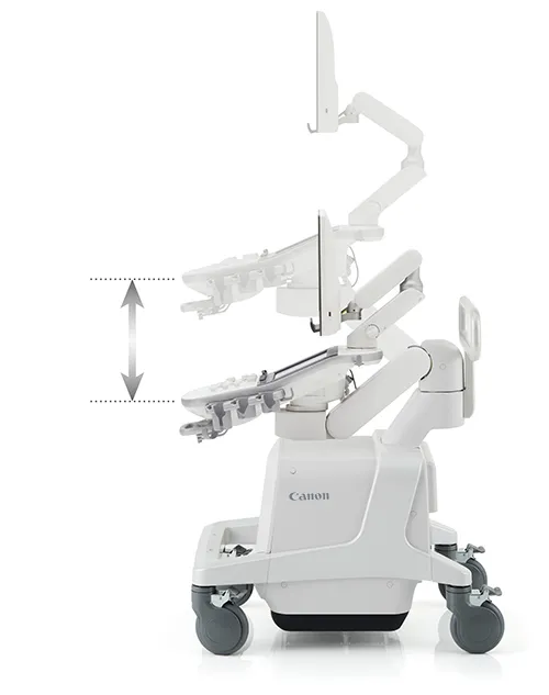 Aplio a450 меньше, легче и легок в управлении. Благодаря регулировке высоты панели более чем на 36 см, боковому направляющему и полностью шарнирному кронштейну монитора Aplio a450 позволяет оптимально настроить консоль практически для любого положения сканирования.